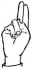 На ћирилици написано ДУШИЦА ЧАЛУКОВИЋ састоји се из 15 слова [?]. Исписано ћириличном једноручном азбуком за глувонеме: